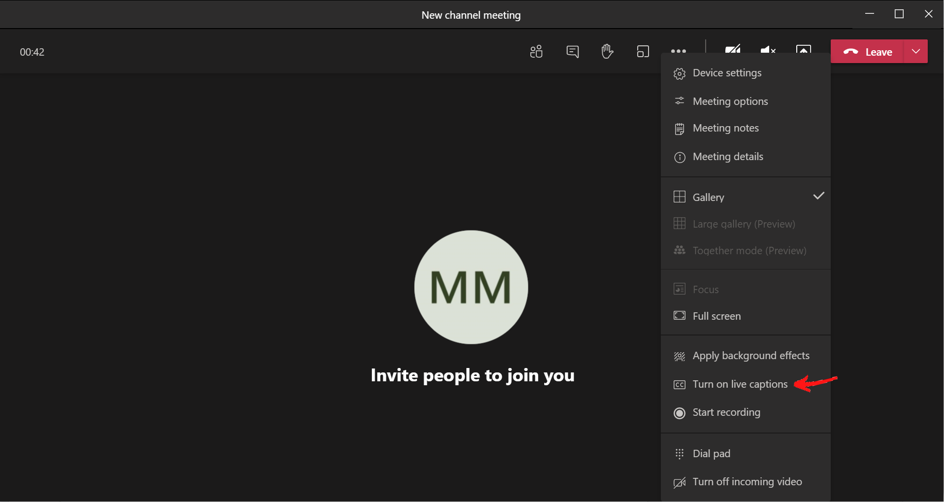 To turn on live captions, while in a meeting, click on the More actions icon.