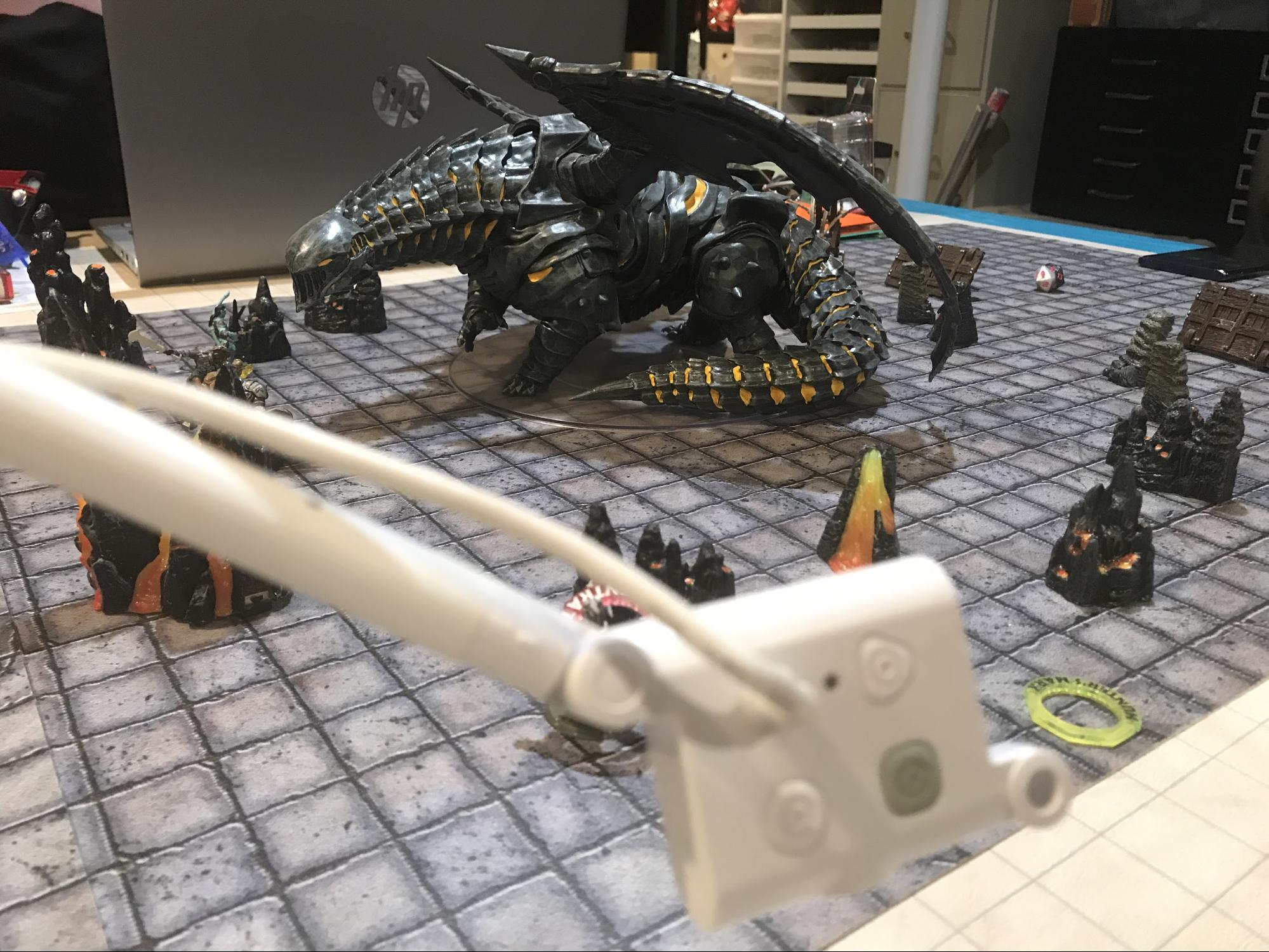 When Paul’s best friend Andy moved to Virginia several years ago, they needed to find a way for them to continue playing together. Andy would join the game virtually via Google Meet and Paul would live stream the board and the miniatures to him using his phone as a makeshift document camera. However, the shortest amount of time that Paul and his friends would spend playing would be about four hours. Not being able to make and receive calls for four hours minimum started to annoy those around Paul who would be trying to reach him. It simply wasn’t a feasible solution to the problem.