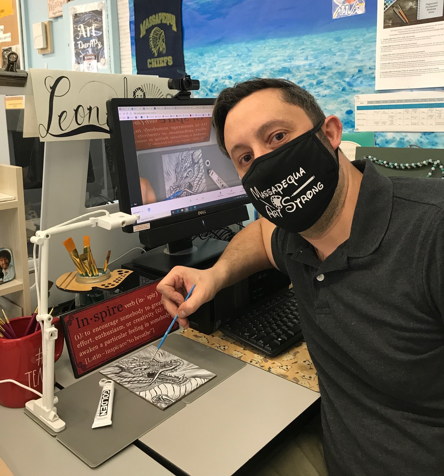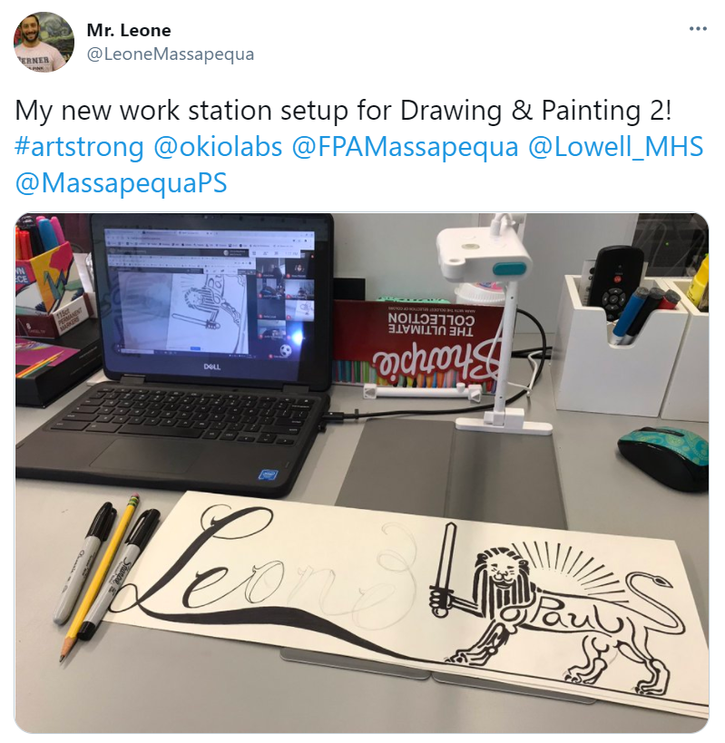 Like many other passionate teachers looking to create an engaging virtual learning experience for their students, Paul first sought out OKIOCAM as a teaching aid. After his old document camera kicked the bucket, Paul and the school’s Director of Fine and Performing Arts eyed up potential replacements. They settled on OKIOCAM, and right off the bat, Paul was impressed. He explains to me that “pretty much the first day I used it, I Tweeted about it because I thought it was cool”. Since then, every art teacher in the entire district has been given an OKIOCAM.