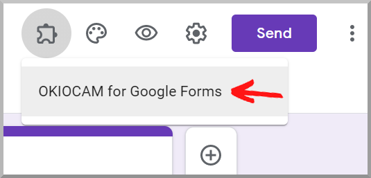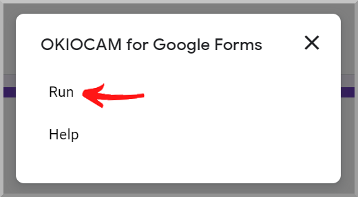 Once installed, you will find OKIOCAM for Google Forms by clicking the Add-ons icon. Click Run to launch it.