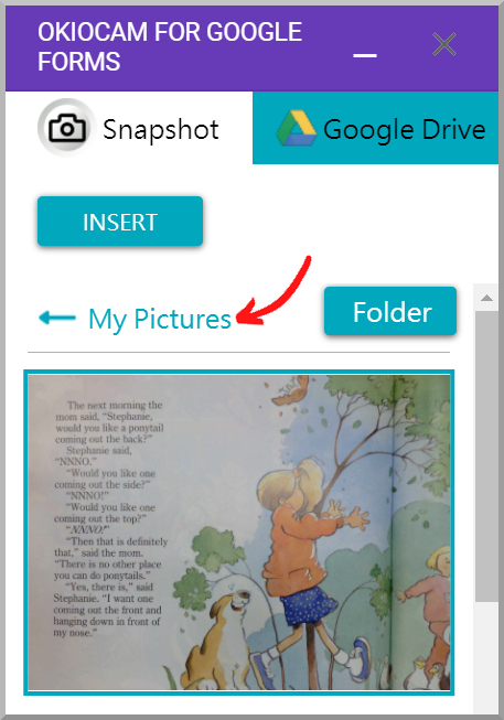 Once launched, you can use OKIOCAM for Google Forms to take snapshots using your OKIOCAM and insert them directly into your forms.