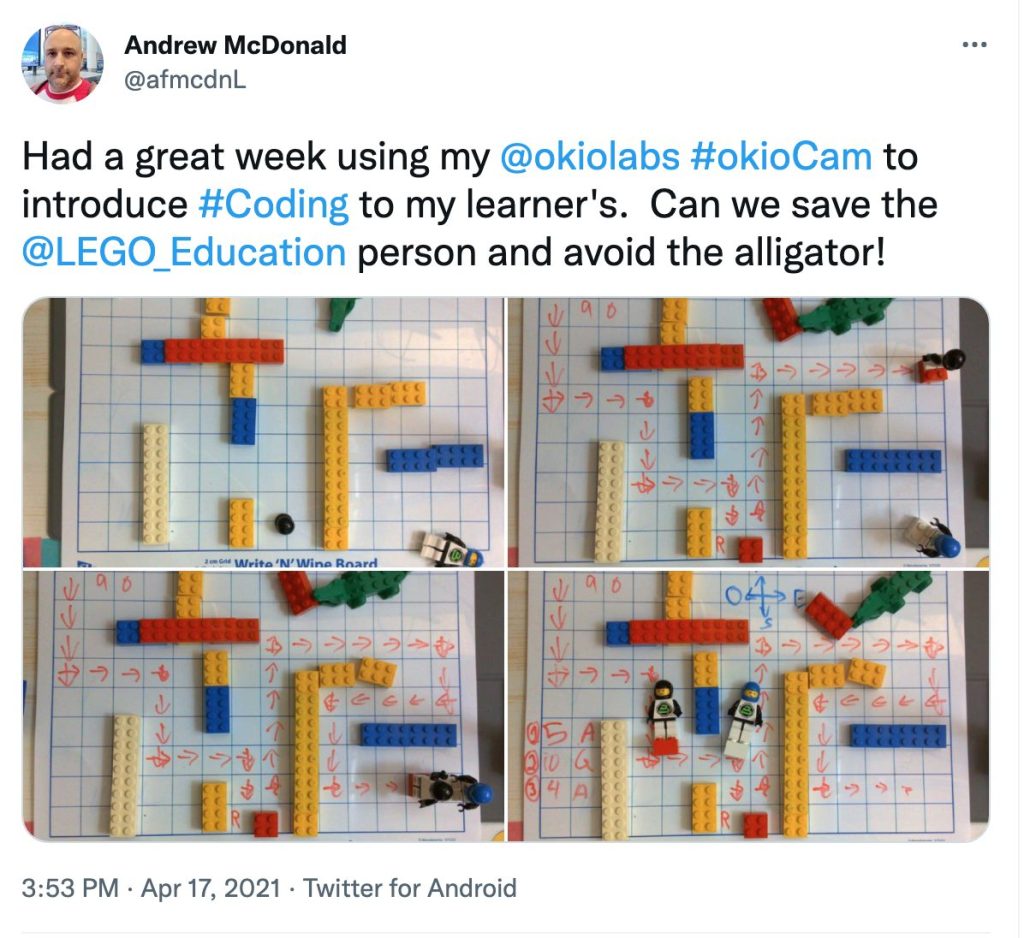 Andrew took LEGO kits into the classroom as an experiment for both himself and his students with the goal of simply building something that moved. He gave them no instructions and no guides, but just wanted them to use their own knowledge that they had built to create a moving robot! “You are always learning as an educator, and the students struggled most because there were no instructions. But I loved this, I wanted them to really use their knowledge, they knew everything that they needed to get this robot to move. It was just about teaching them to believe in their own abilities and training.”