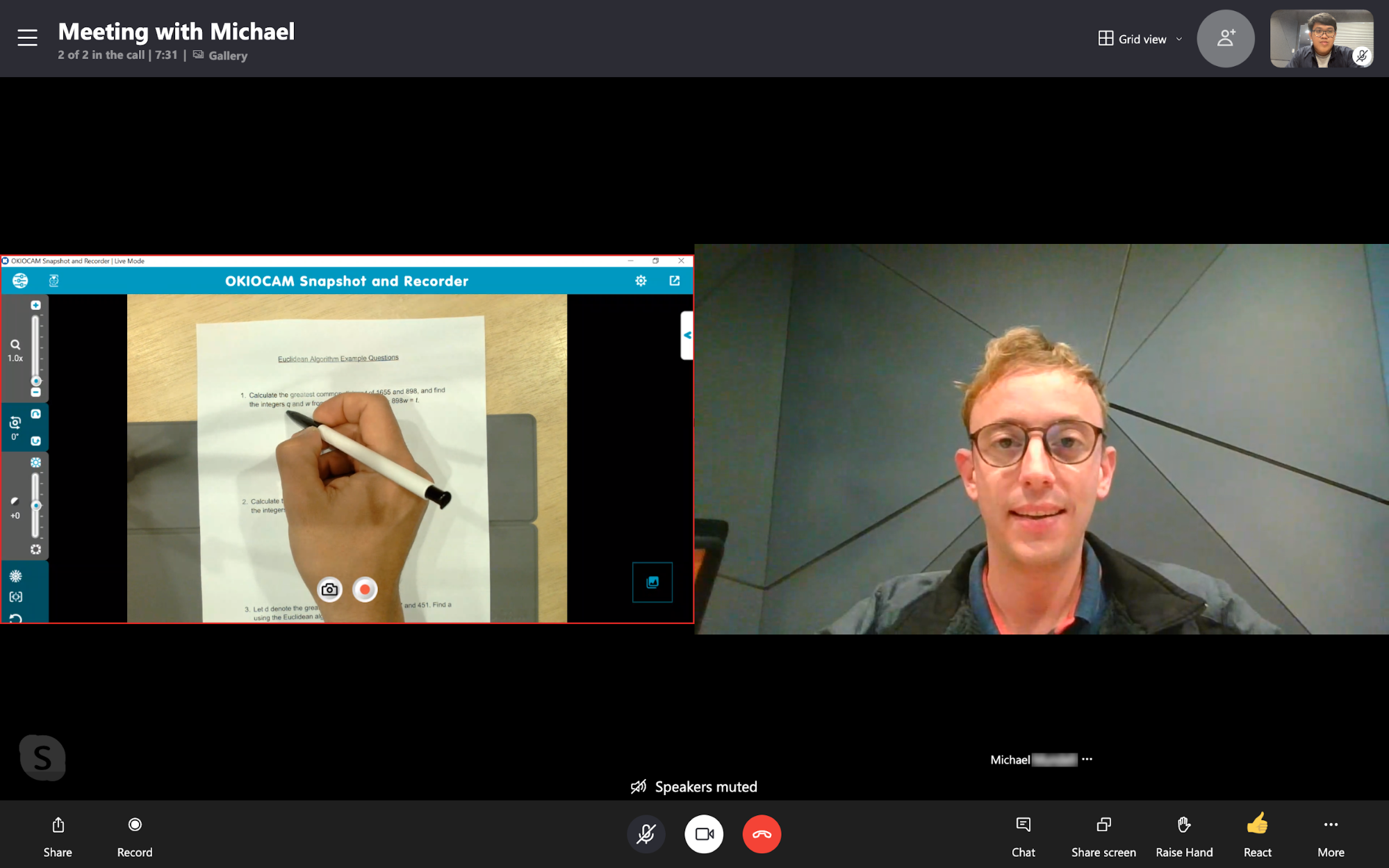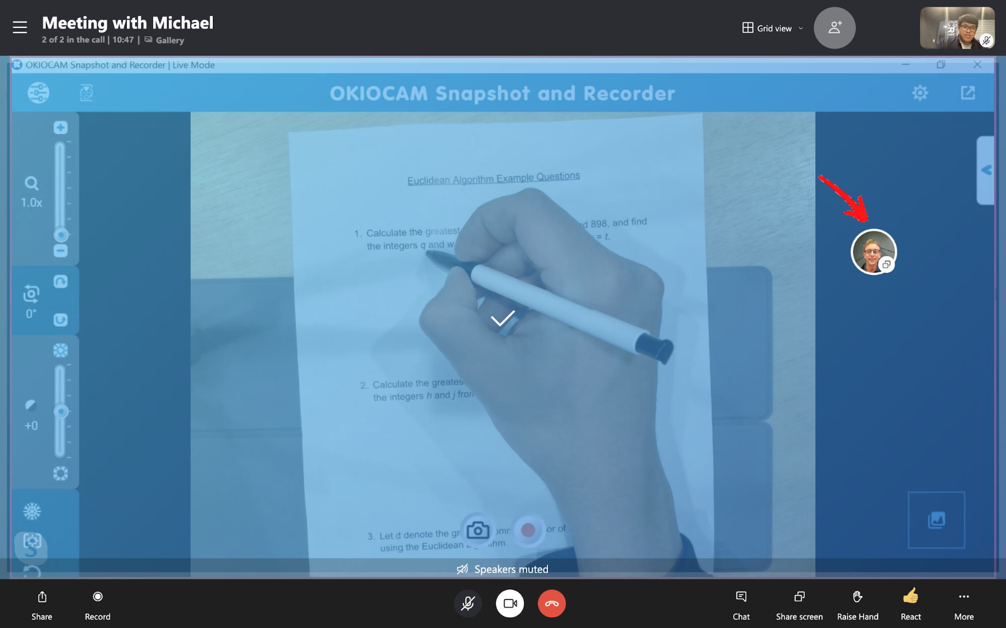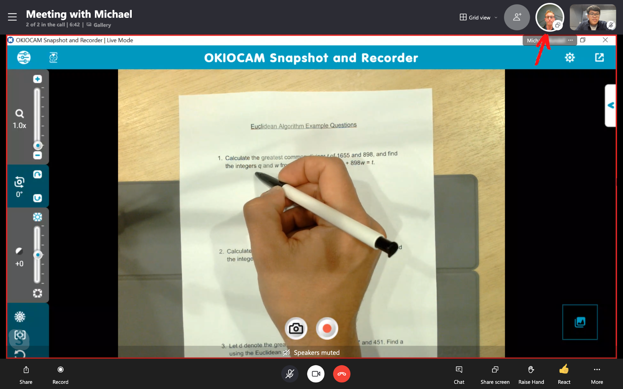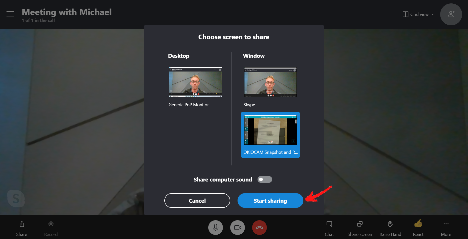 - Select OKIOCAM Snapshot and Recorder. Click Start sharing.