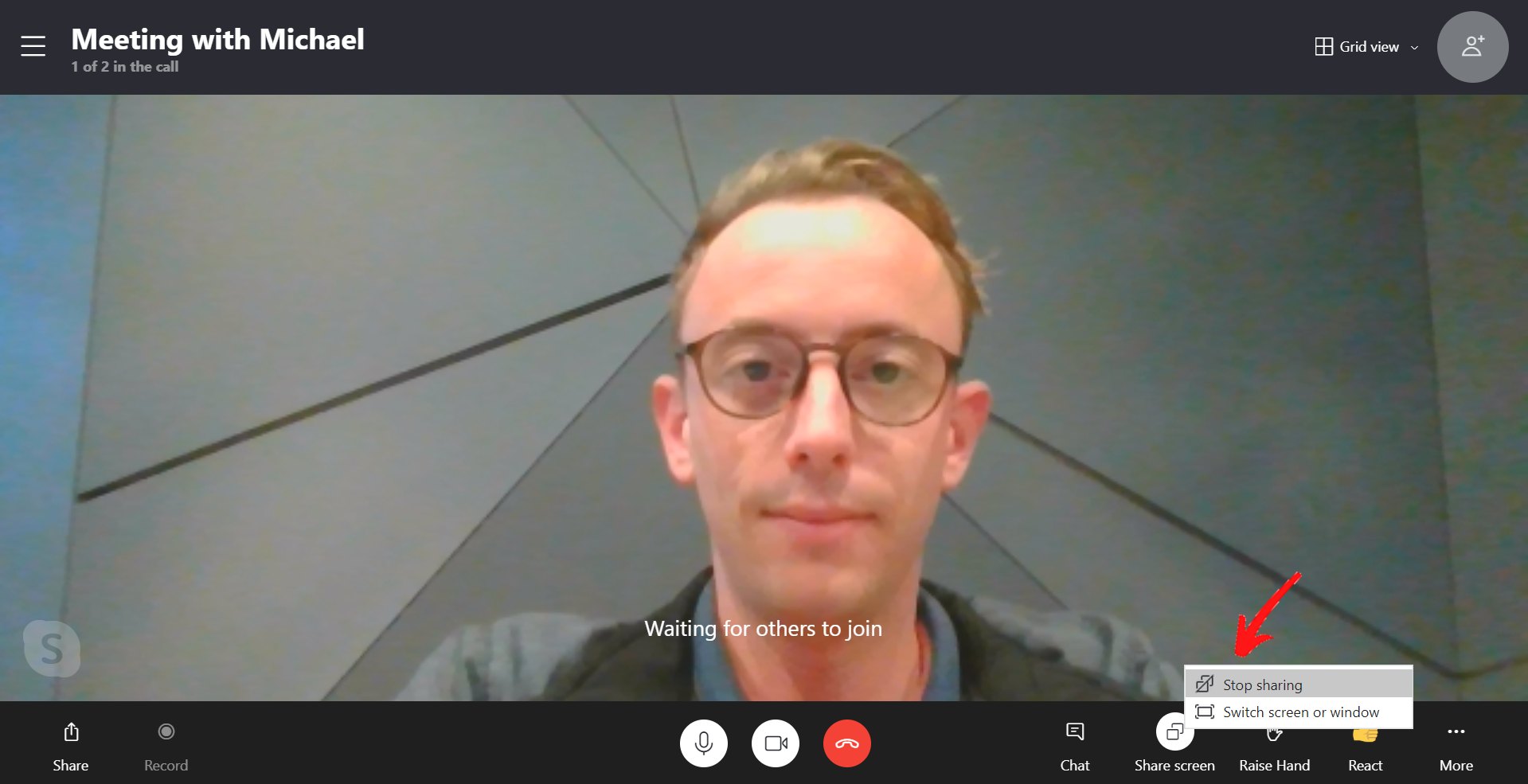 - When you want to stop screen sharing, in Skype, click Share screen and then Stop sharing.