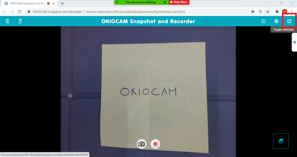 4. You are now sharing Snapshot and Recorder. Click the Toggle fullscreenicon to go to fullscreen.