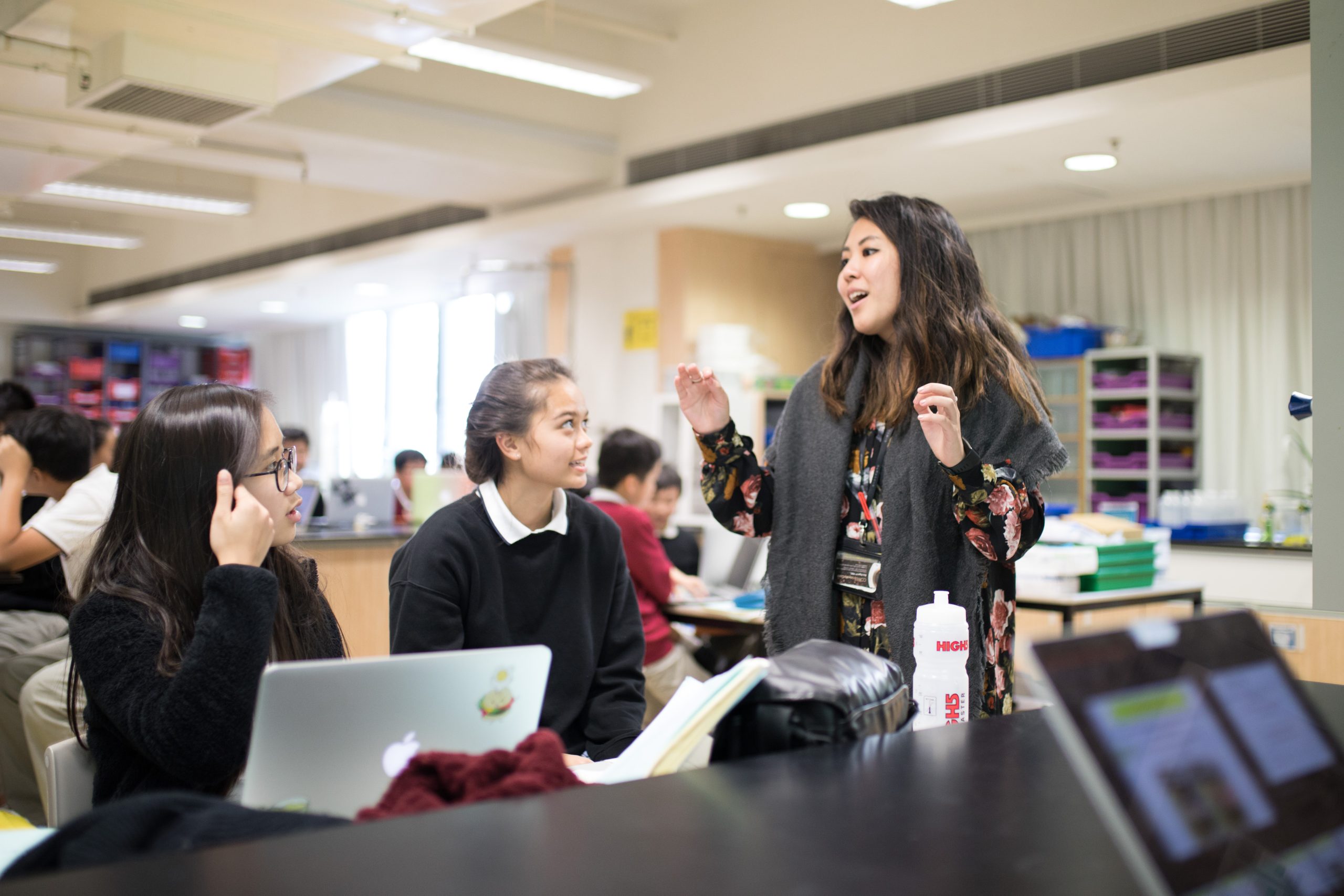 Isabella and a colleague of hers devised what they call the PeerPals system. The PeerPals system groups one in-classroom student with one online student. Isabella tells me how pairing students together “creates a small learning community between the two students, where they rely heavily on each other”. When the in-classroom students are conducting an experiment, the online students are responsible for recording the findings on a data table. After implementing the PeerPals system, Isabella has observed an increase in her students’ ability to use their own initiative and take responsibility for their own learning. Isabella explains to me how the PeerPals system flips her students’ learning on its head and “instead of having the attention on the teacher, now they’re all co-learning together”. Isabella and her colleagues also utilize what they call the PeerPods system, which is similar to the PeerPals system, but for groups of up to four students.