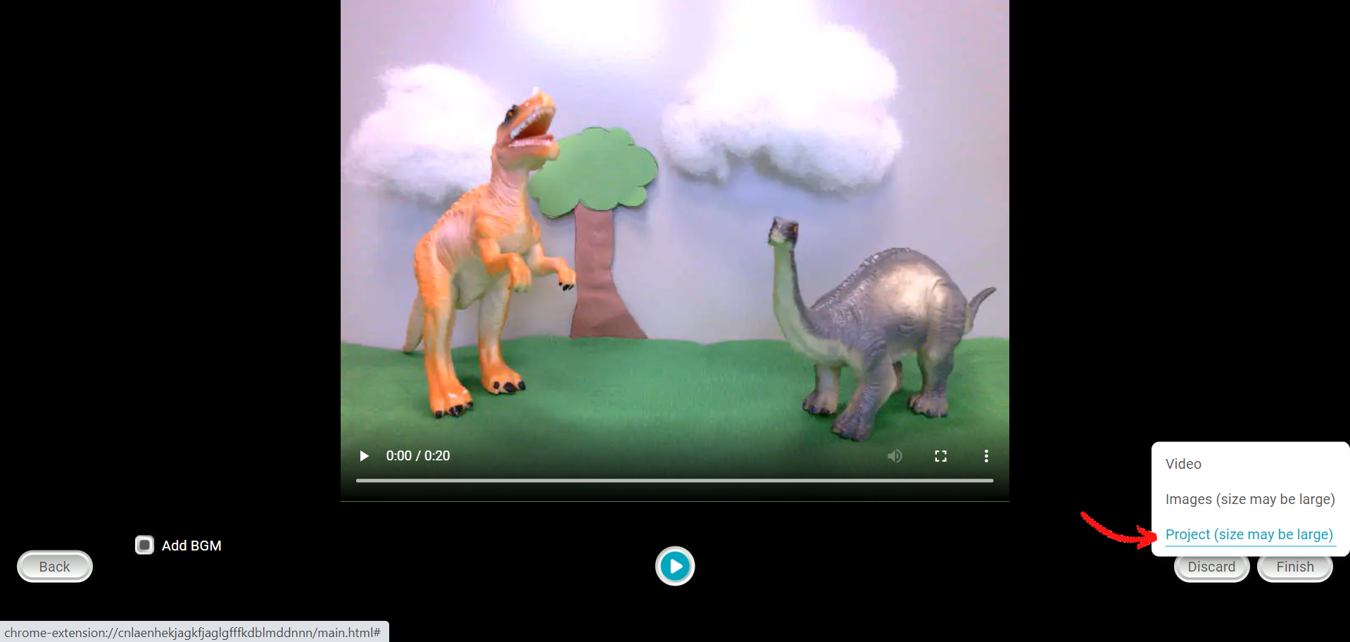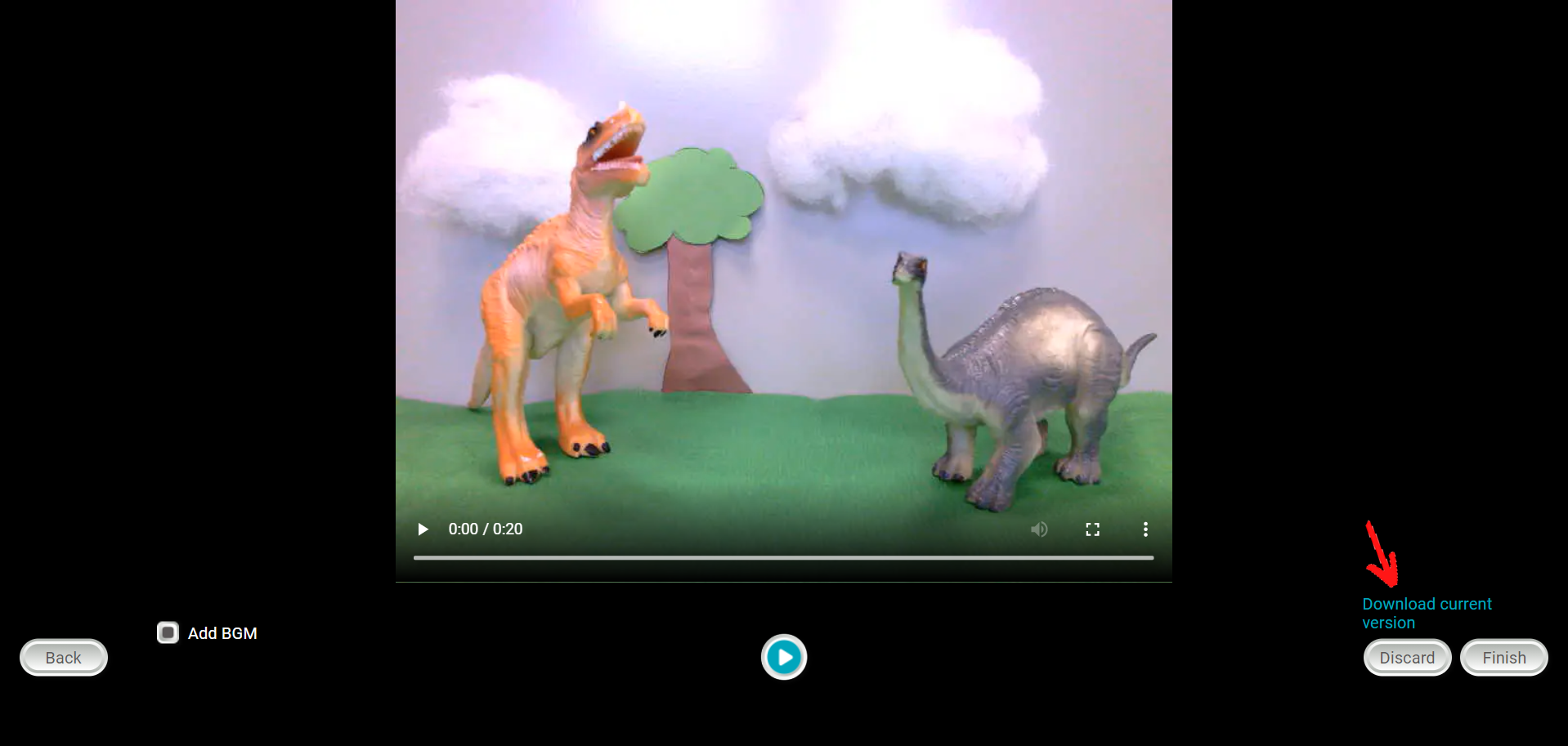 If you’ve taken lots of snapshots but your stop motion video still isn’t quite finished, you can export the project by selecting Download current version > Project (size may be large).