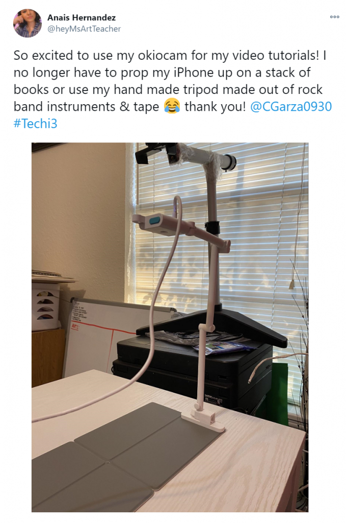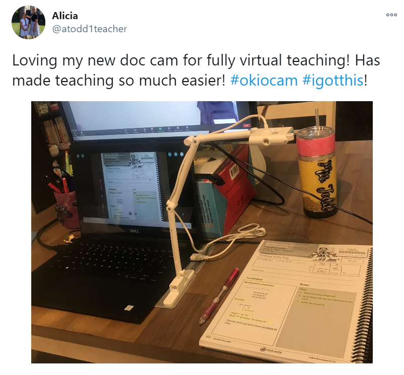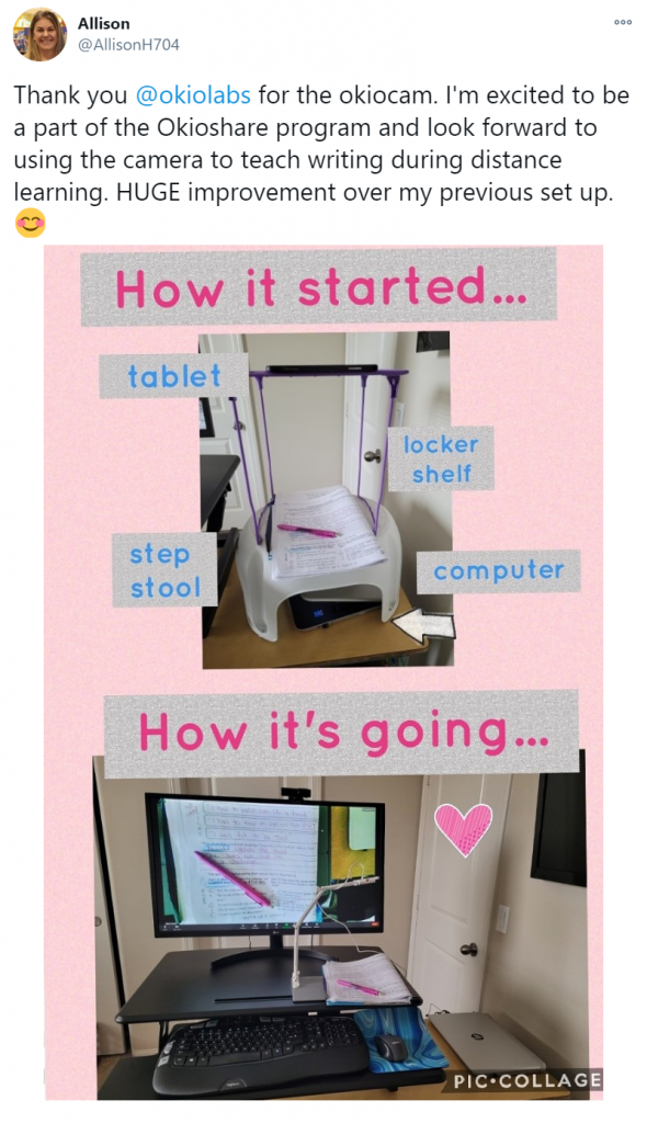 Allison received her OKIOCAM as part of our OKIOSHARE program. We were really excited to be able to help her out and level up her distance learning game! Thanks, Allison!