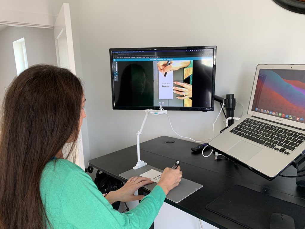 Laura also loves the portability and ease of set-up that the OKIOCAM possesses. She is able to take it all over the school to different classrooms, as well as take it home whenever there are mandatory closings or quarantines! “When I forget my computer or use someone else’s device, I don’t have to worry about setting up the OKIOCAM. I can plug it into any device and it’s seamless!” Laura finds that the OKIOCAM supports her in becoming the best teacher that she can be for her students. “I need to be excited about what I am presenting because the students will feel the vibe. When I am excited they feel that energy and the OKIOCAM helps me keep that energy!”